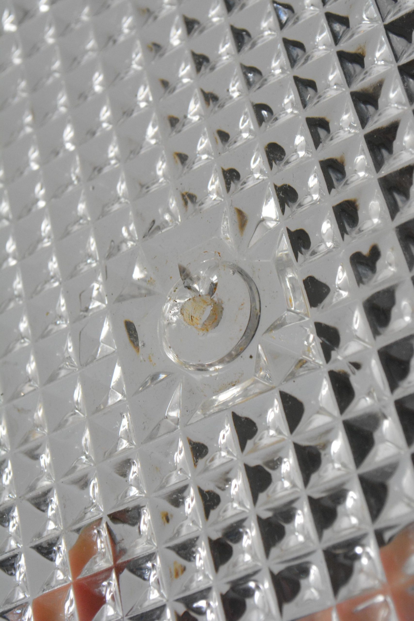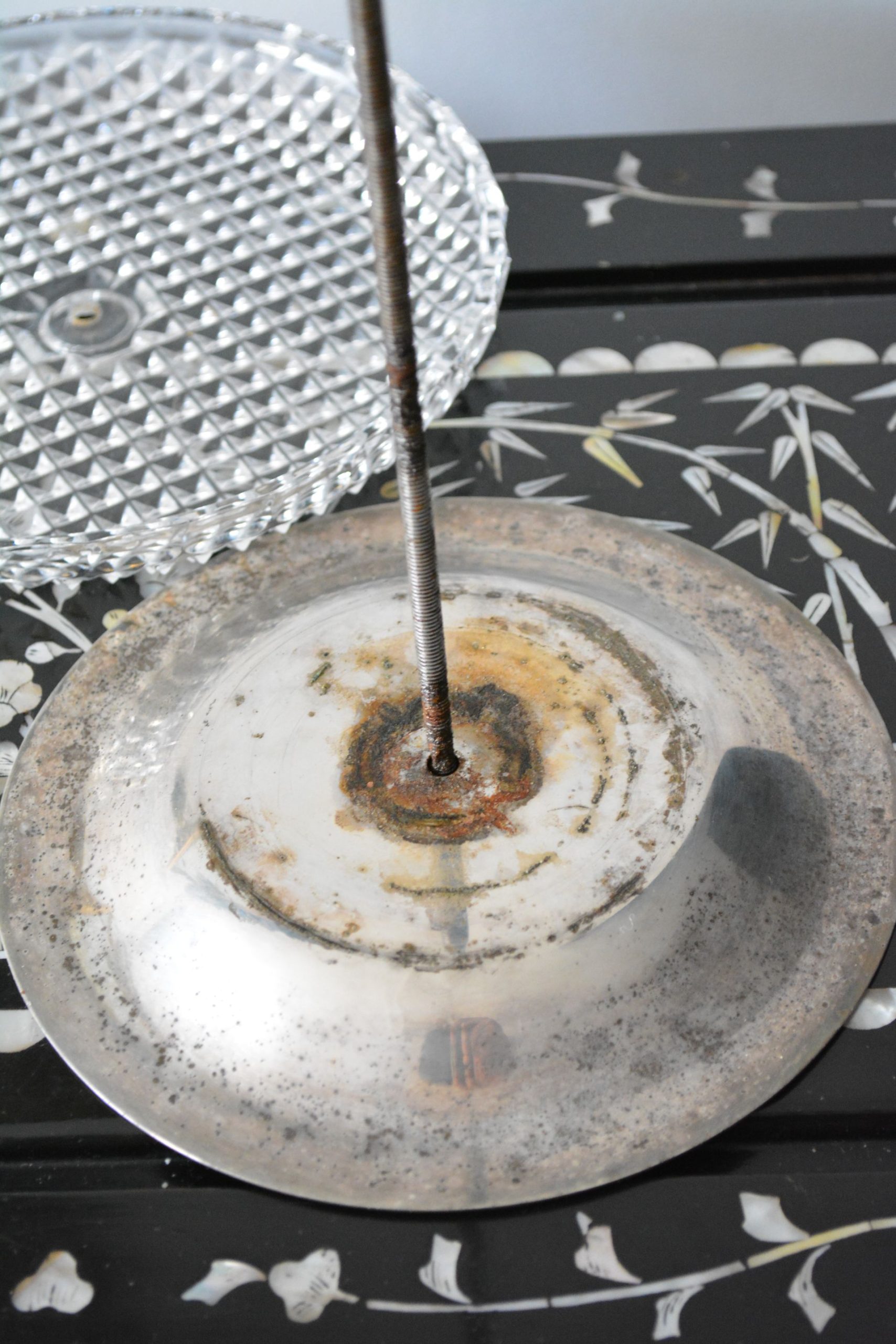 O prato inferior (de metal) apresenta sinais do corrosão.