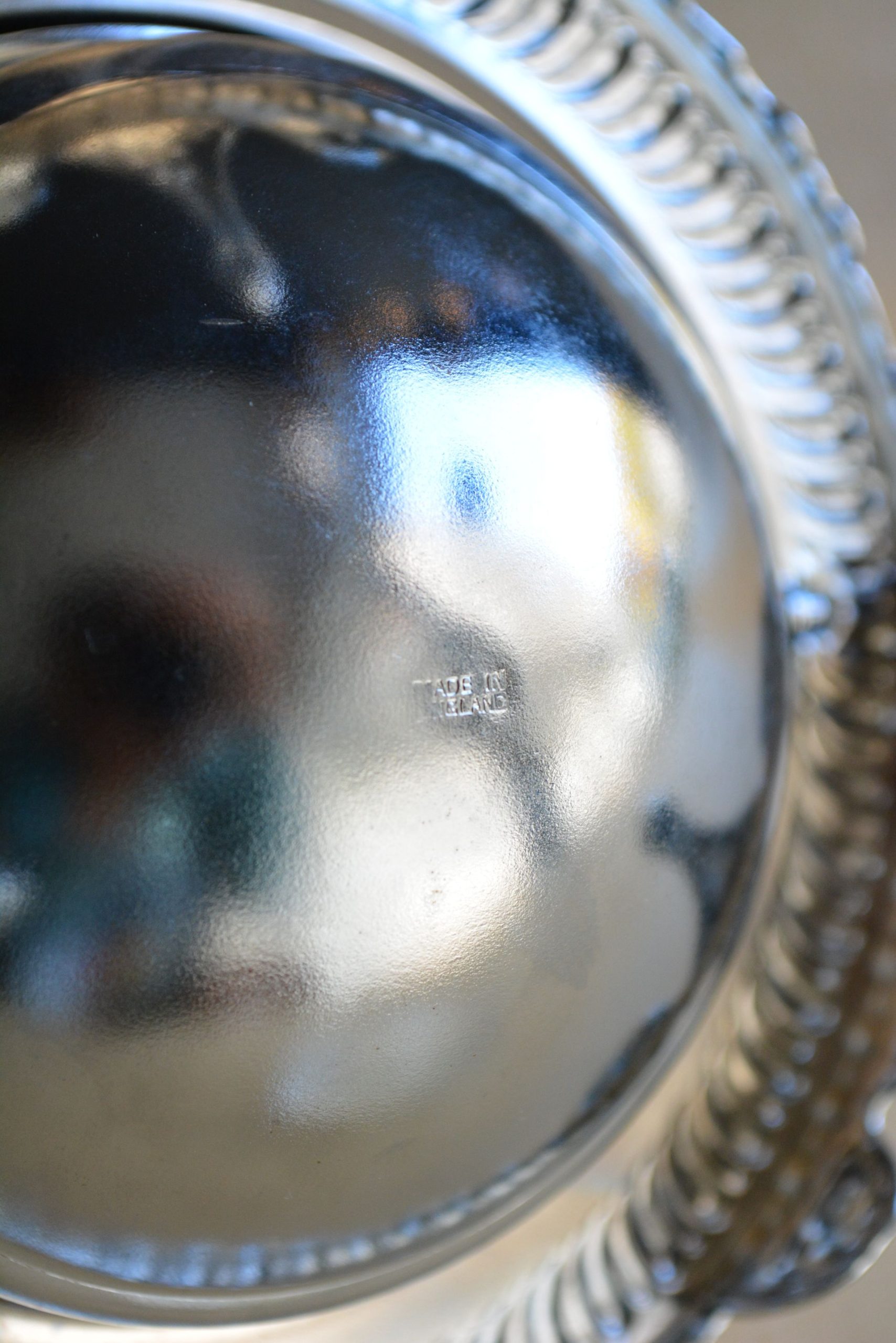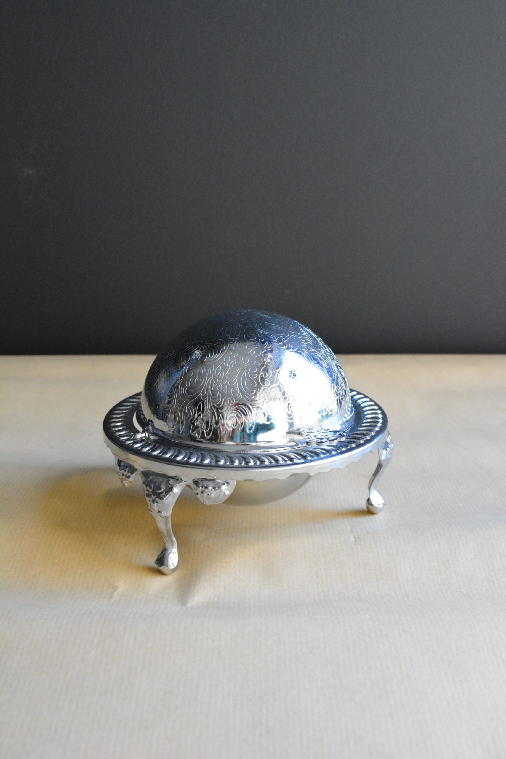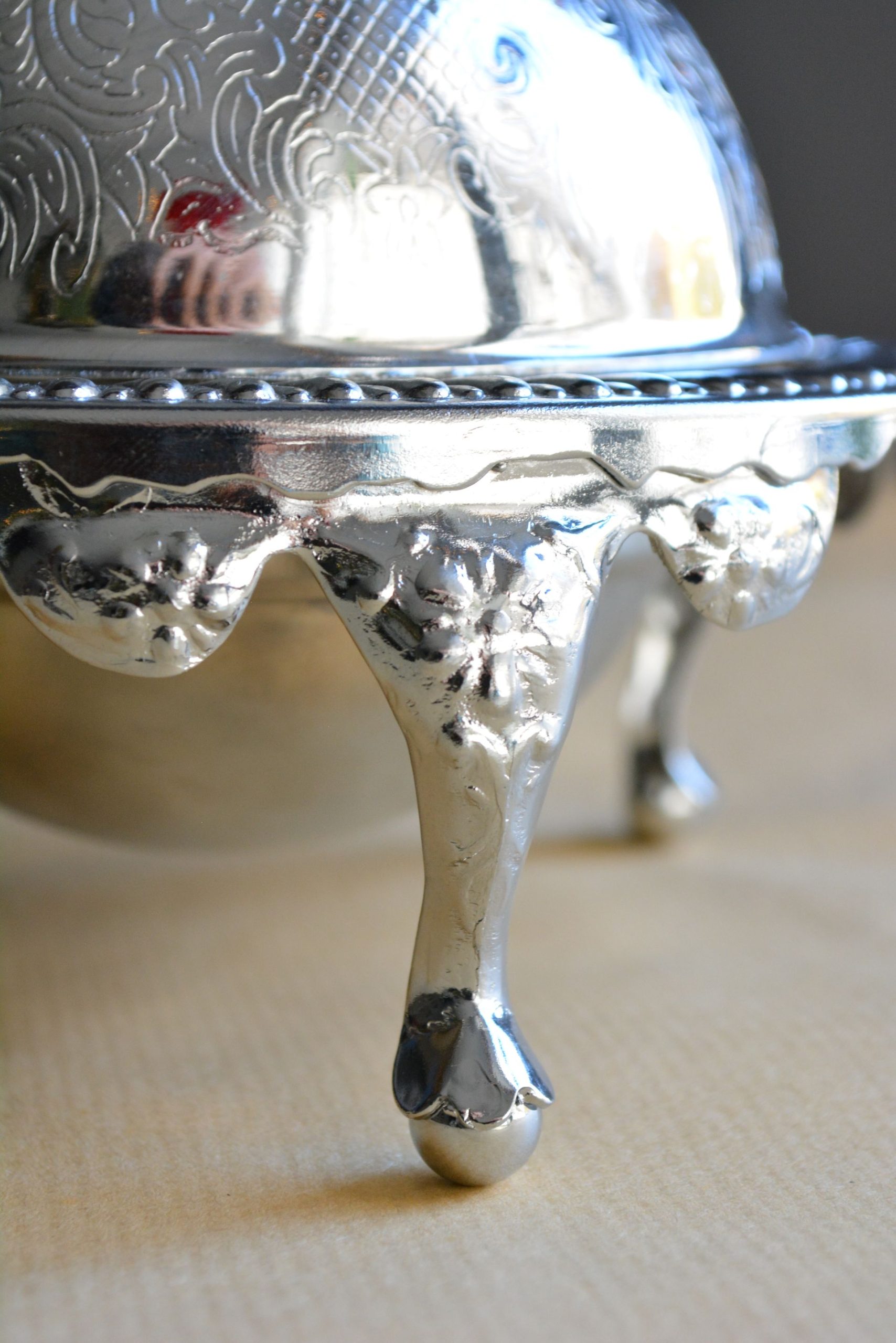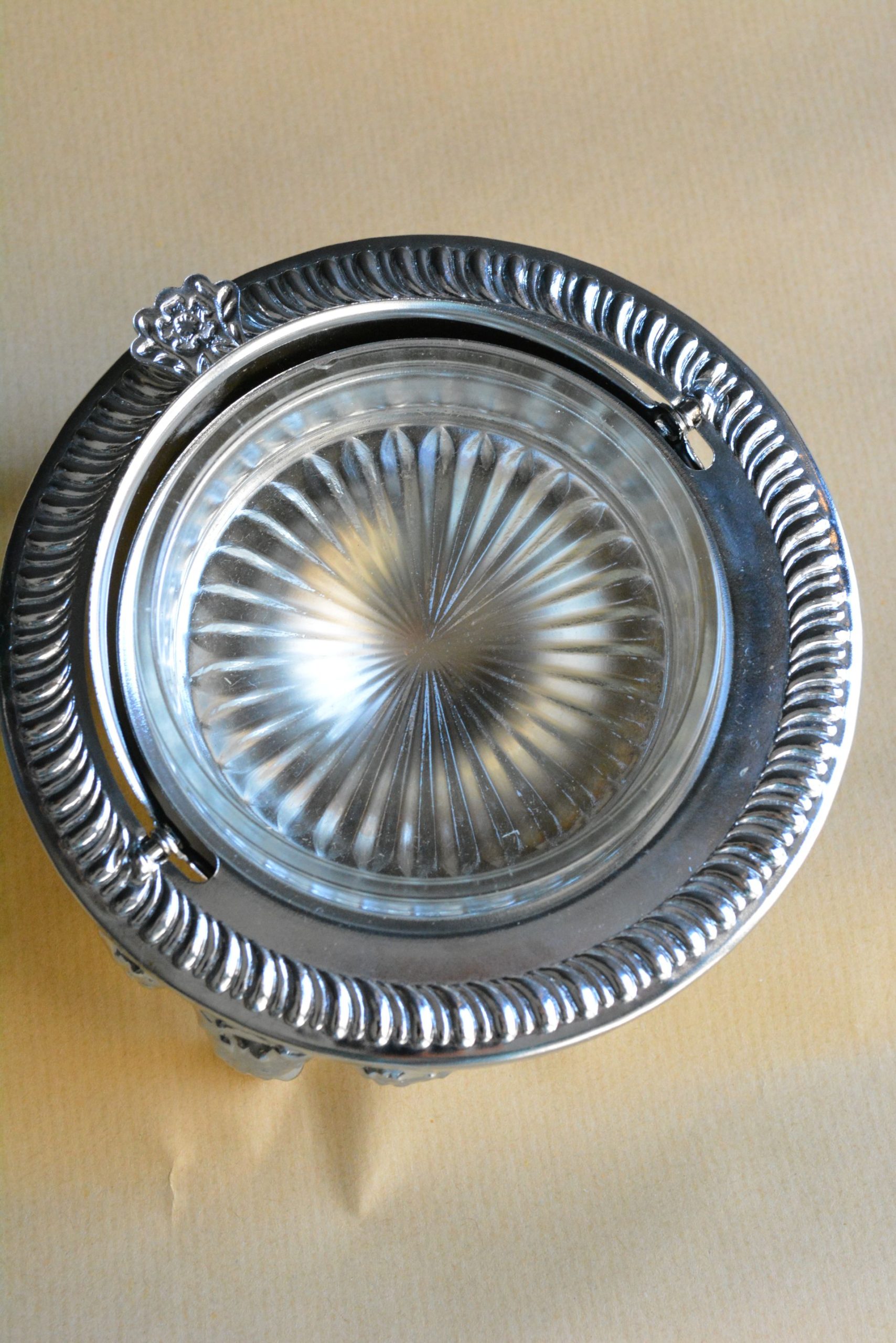 Será enviado desmontado. O diâmetro do prato grande 26cm. Esse prato tem uma lasca, que não fica visível quando a estrutura está montada. A parte superior da estrutura tem revestimento em prata.
